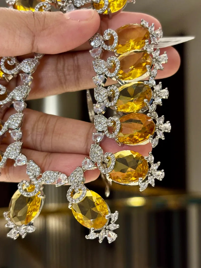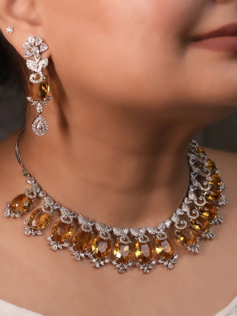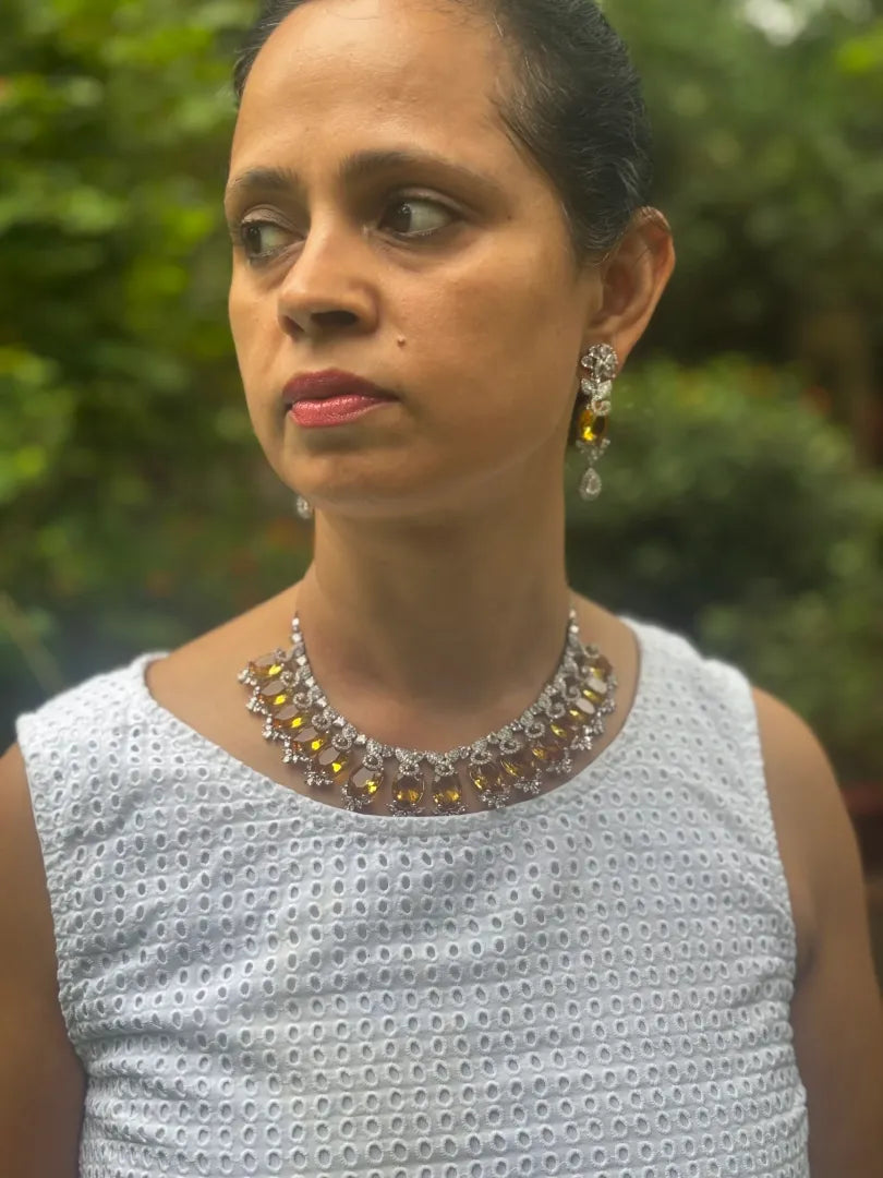 This luminous necklace has citrine stones across which makes it a perfect piece for any occasion - its so versatile!