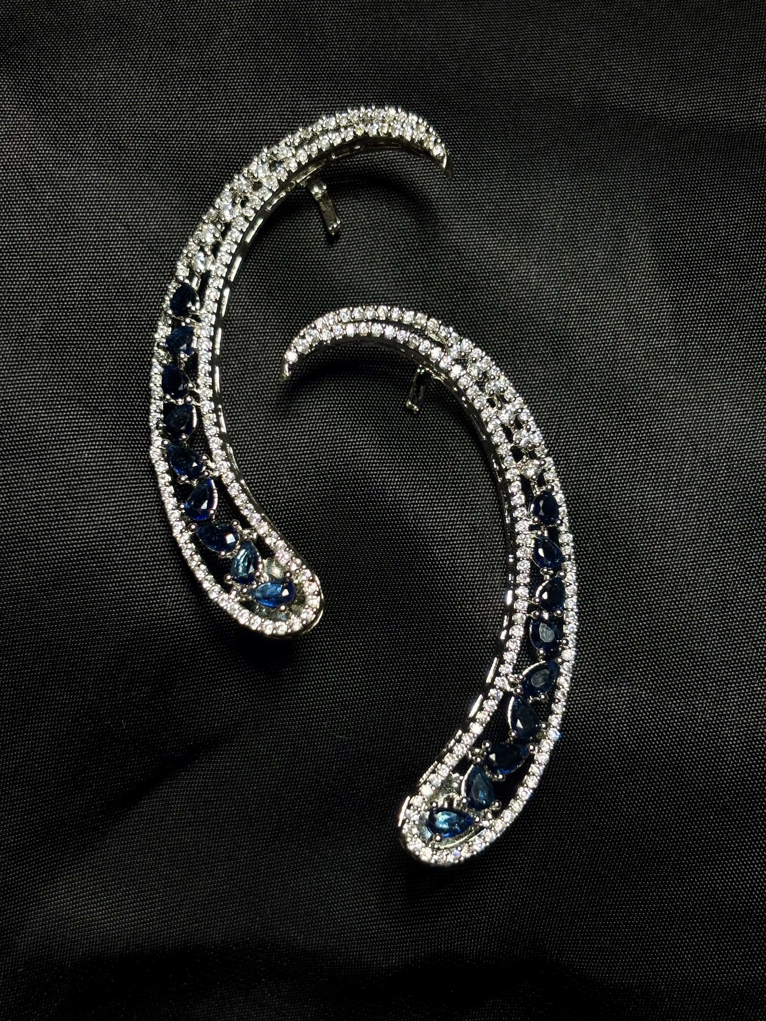 Description: These beautiful ear cuffs are so versatile and beautiful that you just need them to complement your outfit. With Blue Sapphire Stones that make this a statement piece, a must have!