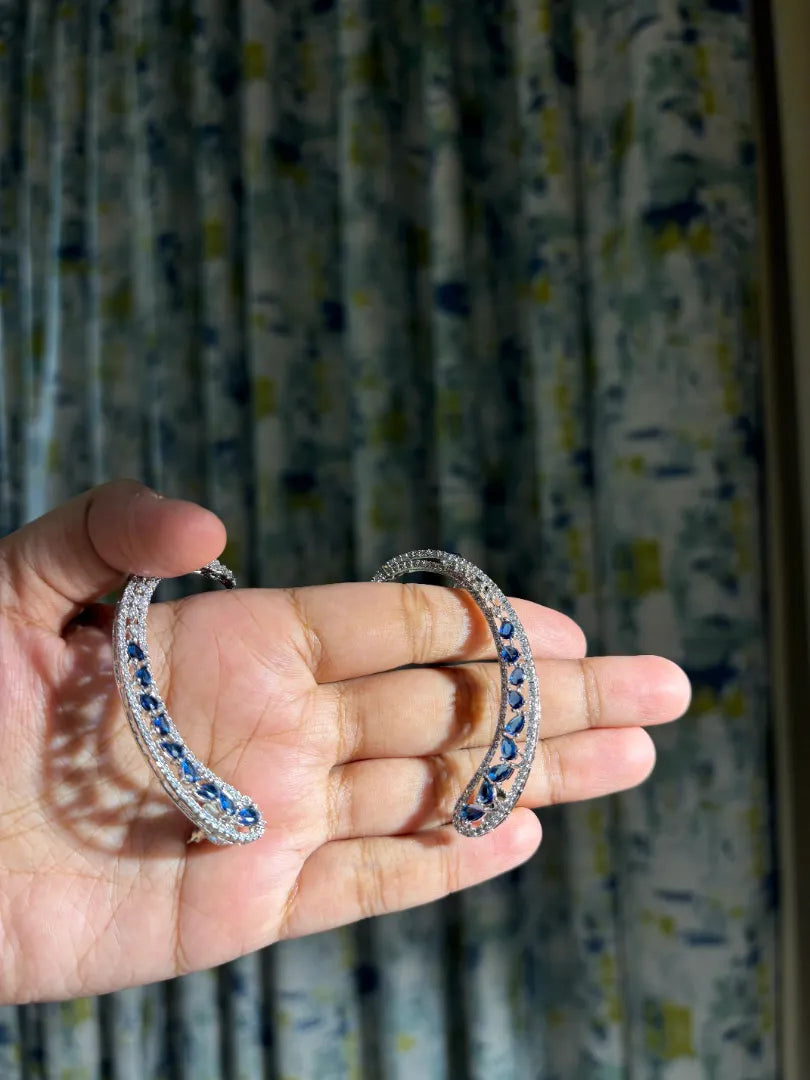 Description: These beautiful ear cuffs are so versatile and beautiful that you just need them to complement your outfit. With Blue Sapphire Stones that make this a statement piece, a must have!