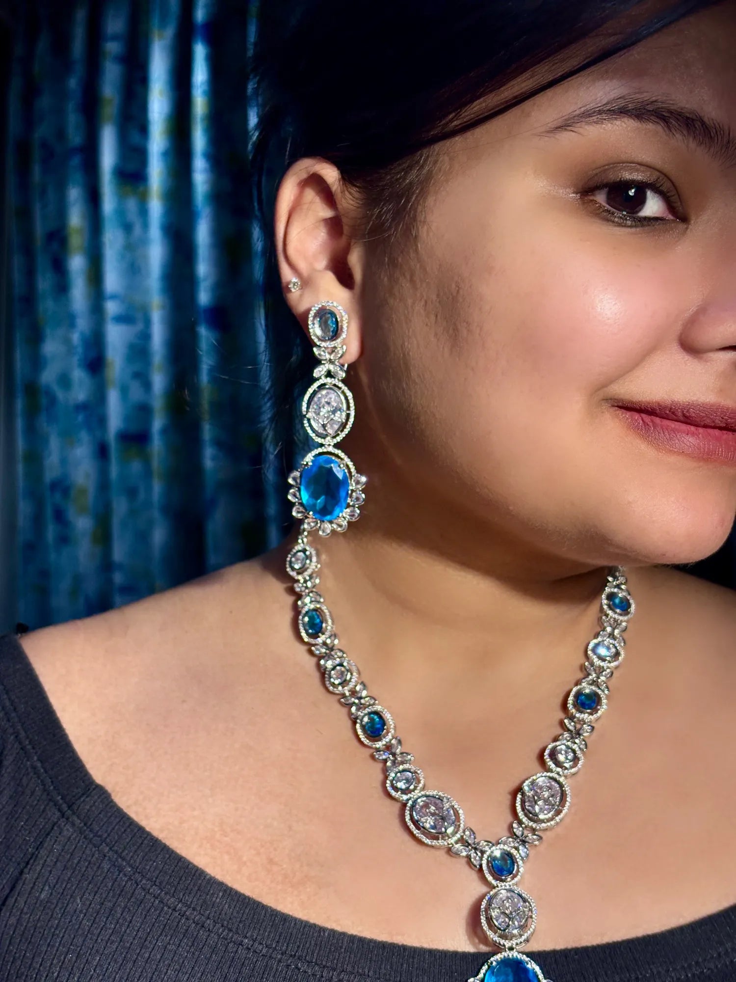 This beautiful necklace set with Beruj stones is a dream in itself. With its high quality shine, you know you are wearing a premium piece when you hold it your hands or adorn your neck with it.